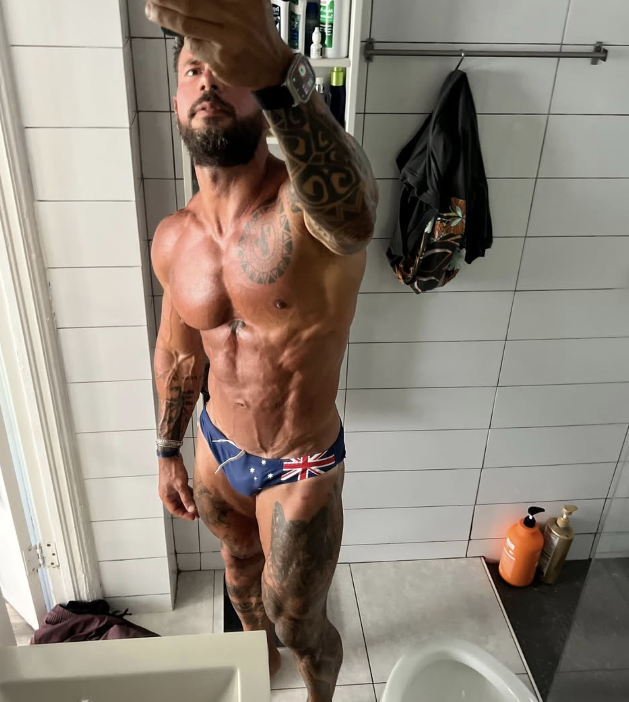 Ang ilaw mula sa kisame ay tumama sa mga katawan nila, nagbigay ng anino sa bawat guhit ng kalamnan. Ang mga pouch ng kanilang briefs ay naninigas, at sa manipis na tela, bakas ang pagtibok ng laman sa loob.